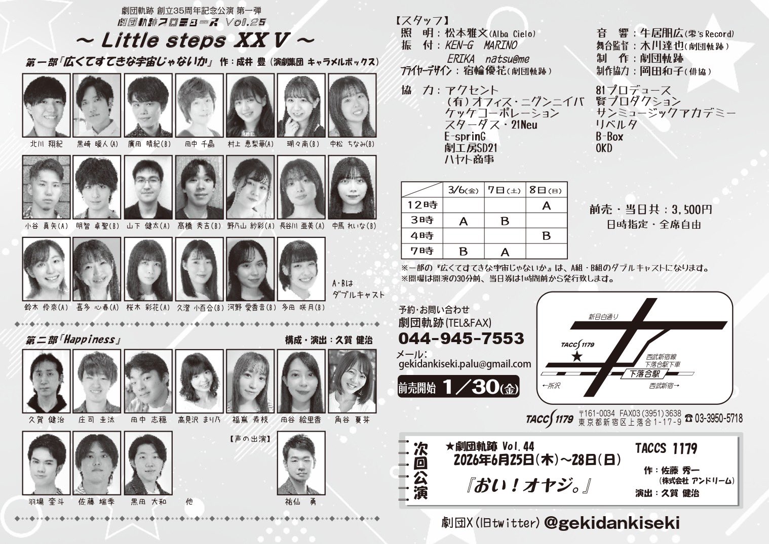 劇団軌跡プロデュースvol.25『Little steps XXV』2026年3月6日(金)~8日(日)